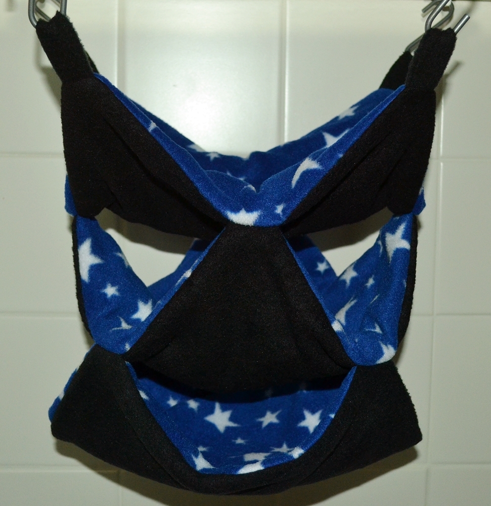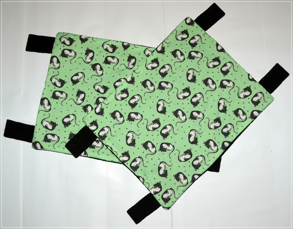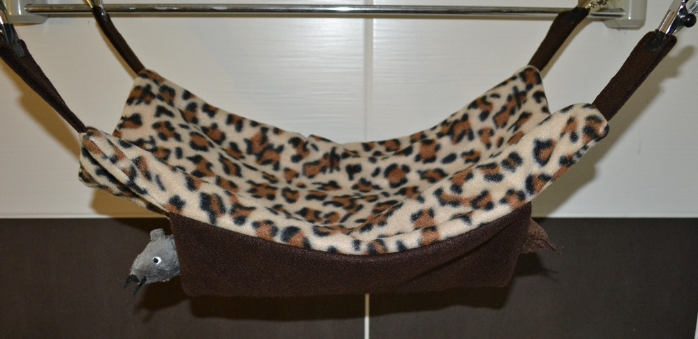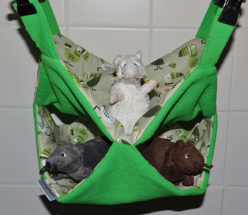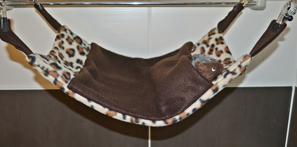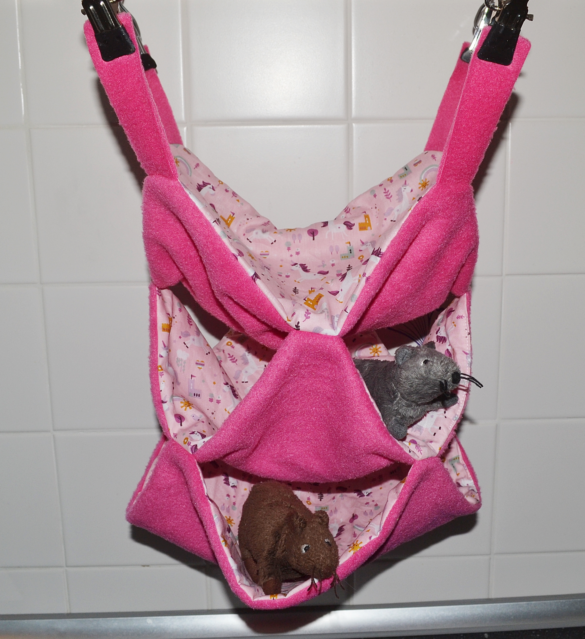 Der Klassiker, der in keinem Rattenkäfig fehlen darf: Die Hängematte. Diese fertige ich gern in jedem gewünschten Format an. Die Hängematten werden dann doppellagig gearbeitet und mindestens vier Schlaufen enthalten. Sie können von beiden Seiten benutzt werden. Auch als Absturzsicherung ideal! Selbstverständlich sind sie auf 30°C in der Waschmaschine waschbar.