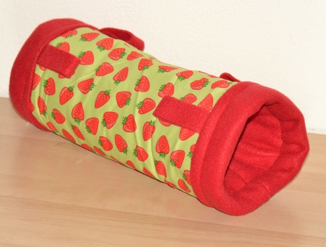 Zwischen dem Innen- und Außenstoff ist der Tunnel mit Volumenvlies verstärkt, kann aber auch ohne angefertigt werden. Er ist auf 30°C in der Waschmaschine waschbar.